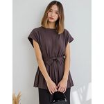 お腹周りが気になってきた母に。肩幅が少し広く見えますが、首周りのあきが狭めでウエストマークやスリットで体型カバーができて、全季節使えそうなデザインと布地と落ち着いた茶色で着回しがききそうです。
