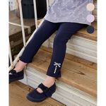 126センチの娘に140を購入、ゆとりもって履けてます。かざりのパールは鋲で留められているので意外ととれなそうです。起毛なのに見た目はすっきりで素材も柔らかくて履き良さそうです。