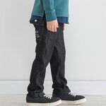 BeBeのパンツにしてはゆったりしてそうだったのでジャストサイズを購入しました。それでもゆとりがあり、来年も着れそうな感じがします。息子は細身なのでワンサイズアップしていたら今年は着れなかったと思います。デザインもとても素敵です。ブラックカッコいいです。