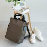 前回カーキ色のリュックを買ったので今回は黒のトート型を探していました。色々見て私には少しお高めですが思っていた形を見つけました。背負った画像は無かったですが大きすぎず良いと思います。ポケットも多めで便利そうです。生地はふっくらした感じです。軽くはない気がしますがショルダーはとても背負いやすいです。1つ残念なのは撥水ではない事です。