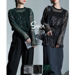 【トップス】 カットソー ラメ グリッター プリーツ シアー 重ね着 インナー 長袖 黒 グレー 緑の口コミ一覧