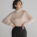 薄手のタートルニットで毛玉はできにくそうなサラッとした感触です。ジャケットやカーディガンに合わせて使います。春の肌寒い時に活躍しそうです。