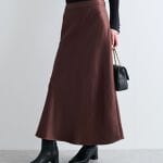 ラインが綺麗なスカートです。写真のように入ウエストで着用できるとよかったのですが、私の体形の問題ですがウエストが緩くて下がってくるのが残念でした。