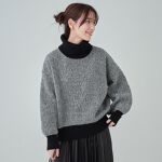 ボリュームのあるタートルネックがあたたかくラメ入りの生地もかわいいです。ワイドパンツに合わせやすい丈感です。