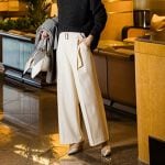 右脚サイドの合わせ目がガタガタに波打っています。加えて、お尻の右斜め後ろ部分も縫製が曲がっているため本来であればタックが入らない場所なのにタックが入ったようになっていて、履くと右側だけダボダボと波打って変なシルエットになります。