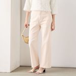 思っていたよりもハイウエストで、脚が長くきれいに見えます。ウエストにゆとりがあるので、薄手のニットであればインして着られそうです。色味は薄いベビーピンクでかわいいです。