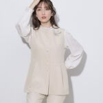 式典用に色々試着していた際に4月はジレでもいいかもしれないと思い淡い色で探していました。私にはもしかしたら若いブランドかもしれないと思いつつ、パールのボタンがかわいいこちらを選んで、元々買ってあったネイビーのパンツに白いブラウスと合わせて見たところ良さそうでした。入学式が暖かったらその組み合わせで参加したいです。