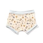 身体106cm体重19kgで110cmサイズのこちらのボクサーパンツを着用しています。ネームタグが外に付いていて綿素材デザインがかわいい為、サイズアウトに備えてリピートしました。肌触りが良く気に入っています。