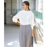 中央ではなく、左寄りの位置にボウタイがあるのがおしゃれです。純白色で、袖口もしっかりしており、フォーマルな印象です。