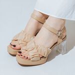 クリアヒールが可愛いです前側に厚みがあるのでヒールの高さの割に疲れにくいしちょっとなら走れます。ただ、足首のところの合否が硬くて高さもあるのでめちゃくちゃ痛いです何度履いても同じ場所靴ズレします。そこだけが非常に惜しいです