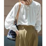 届いた商品を見た時、スモックみたいで失敗したなと思いましたが、着てみるとふしぎと写真のイメージ通りになりました。気楽に着るならブラックと思い、在庫があったSサイズ購入でしたが、タックが沢山入ってるので、Sサイズでも全然大丈夫でした。