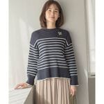 コットン、アクリルの混合の生地のセーターです。着てみると温かくて、とても良いです。首の部分も、ハイネックといっても、それほど首の上部分までの丈ではないので良かったです。