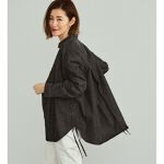 真っ黒ではなくグレーががった黒で、思ったより薄地のダンガリーっぽい生地感。これ以上厚いと重くて肩がこってしまうかもしれないのでちょうどよいかなと。ボタンもスナップではなく普通の穴にはめるタイプ。デザインはカッコいいし、シルエットもビッグでトレーナーの上からでも羽織れます。
