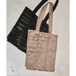 持ち手の長さは肩にかけるとちょうどいいです。レースのデザインがとても可愛いですが、使っているうちに引っ掛けそうで少し心配です。落ち着いたベージュの色合いがとても可愛いので大事に使いたいです。