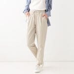 手持ちのテーパードパンツより腰まわりやももがゆったりですが、ダボつくほどではないです。暑い夏でもまとわりつかなくてよいと思います。丈は踝が隠れるくらいでした。冬以外使えそうです。