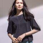 袖がバルーンになってて涼しくていいです。さらっとした編地のニットです。色が少し思ってたより濃いかったです。