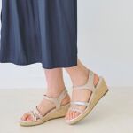 素材は柔らかく、足底の土踏まずから踵にかけてのクッションもとても良いです。メタル部分が硬めなので靴擦れを心配していましたが、丸1日歩いても靴擦れしませんでした。両足とも外反母趾のため、サンダルは必ず母趾のあたりに靴擦れができていましたが、こちらの商品は靴擦れもなく快適な履き心地でした。色合いも肌に馴染み、どのような服でも合いそうです。サイズもいつもM23.0cm23.5cmかL24.0cm24.5cmで迷いますが、Мで23.5cm24.0cmは珍しい設定でぴったりでした。素足で履くのは問題ないのですが、ストッキングで履くと前滑りするため、滑り止めのインソールをセットしました。とても良い買い物が出来ました。