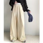 ストンと落ちる生地でスタイル良く見えます。生地も薄過ぎず思っていたよりしっかりしていて良かったです。私は実際に履いてみるとダブルウエストはあまり気に入りませんでした。