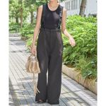生地は厚め。中に着るのはブラウス系よりTシャツの方がサスペンダーが映えます。