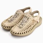 友人に勧めと素材、色は大好きで、ほっこりするアイボリーを購入。大概のものはサイズ通りでフィットしますが、KEENはサイズ選びに困りました。いつも通りのサイズだと足幅がきつく、靴も履きにくい。素材が足にフィットしやすいものなので、25.5cmのものと交換してもらいました。靴の中は前後には余裕がありますが横幅は良い感じです。ただ足が大きく見える感じが気になるのと使いこなすと大きすぎないのか心配です。
