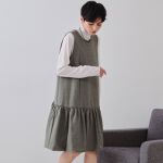 膝が半分見えるくらいの長さで、裾のバルーンデザインが可愛く、Aラインジャンスカなので、華奢な体型でも身体のラインが出ず良いです。ジャンスカの下にブラウスを合わせても可愛いですし、ジャンスカの上にカーディガンを合わせても可愛いなと思いました。