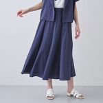 少し濁ったネイビーで、グレーのトップスと相性が良いです。裏地もないので涼しく着用できます。長さは足首までありますが、軽い布地なので重さは感じません。撥水加工もしてあるので、これからの季節安心です。