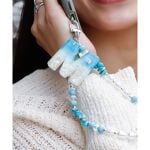 商品到着後さっそく携帯に付けてみました。ストラップの石はしっかりしており重みがあります。予想していたよりストラップが長かったですが、デザインかわいいし気に入っています。