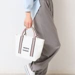 今回プレゼント用に。自分用で先日購入してよかったので再度購入。色も合わせやすいのと生地もしっかりしていて、上部はファスナー。マチも広く小ぶりながら沢山入ります。年齢問わず使えるデザインと色合いです。