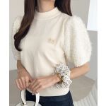 【mily bilet】フェミニンニット。ブローチ付き肩シャギーパフスリーブプルオーバー(ニット)の口コミ一覧
