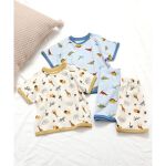 ワッフル生地で柔らかい生地です。ズボンは膝上くらいでした。この生地で半袖長ズボンのパジャマが欲しいです。