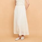 夏らしく爽やかな色合いで、変形プリーツが程よく身体にフィットするので着心地の良いスカートです。