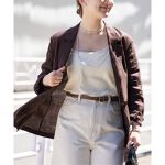 だらしなくならない、でもカジュアルにも使えるリネンジャケット。ブラウンの色合いがとてもオシャレです。いつもサイズは36が多いですが、これは38でぴったりでした。