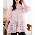 思った通りすごく可愛いです。気になる二の腕、お腹とお尻が隠せるのに、ポコポコして透け感のある生地のおかげで涼しげに見えてとってもいいです。