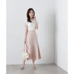 優しいピンク色とマーメイドラインが上品で可愛いです。こちらのブランドを愛用していますが、商品によってウエストサイズに差があることがあります。このスカートはいつものサイズでピッタリでよかったです。