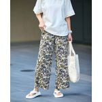 迷彩なのですが、花柄が入っていて可愛いです。生地はサラッとしていて、真夏でも肌にはりつかないと思います。ウェストゴムで楽ちんです。
