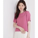 ピンクは似合うものと似合わないものとがあって難しい色だと思っているのですが、こちらはショップで実際に試着して納得の上購入しました。くすんでいない派手すぎないピンクで顔映りが良くしっかりした生地感とシンプルなデザインが気に入りました。けっこう短めの着丈なのでスタイルアップして着られますが、ハイウエストのボトムスに合わせないと腕を上げる動作などで下着が見えて気になりそうです。シルエット的にパンツよりはスカート合わせで着たいです。