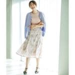生地は薄く透け感とシャリ感がほどほどにあり、夏でも着られそうです。1番上のだけ、花ビジューボタンでかわいらしい。グレージュの色合いは少しピンクを感じるような優しい明るいベージュです。ボタンをすべて留めてLサイズでゆとりがあるサイズ感です。折りじわが付きやすいので届いたら、すぐに開封をおすすめします。