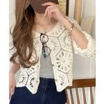 写真の通りの網目でとても可愛らしいです。羽織るのにとてもよいと思います。