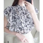 袖や胸元のフリルのデザインがかわいいです。シフォン素材も涼しげに見えます。