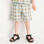 クリーム地に青緑のチェックが入ったベージュの方を購入しました。色味は写真通りな感じです。夏っぽく爽やかで洗ってもすぐに乾きます。セットアップで着せても可愛かったです。少し派手ですが子供なら全然許されます。