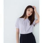 上品できれいなラベンダー色でモノトーンカラーのボトムスに合います。サラッとした肌触りで、汗のべたつきを緩和してくれます。シワがつきにくい素材なのも良い。一つ気になったのは、パフスリーブで袖丈が肩と肘の真ん中ぐらいなので、二の腕の太さが強調されることですね。