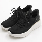 スリップインは屈まず脱ぎ履きできるので、妊婦さんにもおすすめです!紐が付いていますがほぼ飾りのようなものです。メッシュで通気性が良さそうです。かかとのゴールドのラインがアクセントでおしゃれです。サイズは元々持っている別シリーズと同じサイズでぴったりでした。