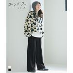 同じような素材のトップスを着るとセットアップできれいめな感じになります。