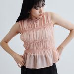 シャーリングがかわいく伸びてきやすいブラウスです。丈は短めでスタイル良くみえます。