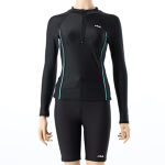 今日着用してジムで泳いでみました。他のFILAの水着は何着も使用していますが、さすがに長袖だと、少し重くなり、若干泳ぎにくさは感じました。日焼け防止に夏の間だけ着用しようと思います。色は画像通りで、派手さはありません。ジップを下まで下げて着れないタイプなので星3にしました。