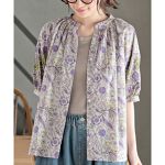 柄シャツですがくすみ系で柔らかな印象です。薄手でゆったりしているのでモデルさんのように羽織のように着てみたいです。