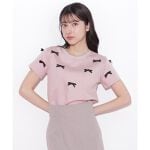 白を購入。前面にリボンがたくさんついていて、その存在感に驚きましたが、着てみると悪目立ちせず、とても気に入りました。いろいろな服にも合わせやすそうです。コットン100%の表記ですが、つるっとさらっとした素材で着心地がよく、洗濯しても乾きやすいです。丈は短めです。