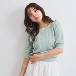 首まわりの開き具合も程よく、袖もふんわりしていてかわいいです。スカートにあわせやすいニットだと思いました。