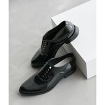 ツヤのあるハンサムな靴で、思ったより小さめに見えます。