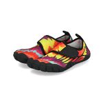 普段のスニーカーサイズと同じサイズで購入しました。つま先は少しゆとりがあるように思いましたが、息子が「サイズいい感じ!」と言っていました。オンラインはサイズ選びが難しいので返品や交換手続きになると面倒なので、とりあえず一安心。また、テープタイプのマリンシューズは子供が履きやすいのでありがたいです。
